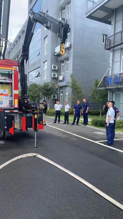 演示結(jié)束后,鎮(zhèn)政府各級(jí)領(lǐng)導(dǎo)及平陽(yáng)縣大隊(duì)領(lǐng)導(dǎo)來到新購(gòu)的舉升搶險(xiǎn)主戰(zhàn)消防車前,詳 細(xì)參觀、了解消防車輛技術(shù)性能,觀摩了新型消防車輛器材的展示和車輛各種功能操作 演示,并對(duì)我公司研制的新產(chǎn)品進(jìn)行了點(diǎn)評(píng),給予了高度的贊許,稱此款車型最大化的 滿足了老舊小區(qū)、狹窄街道、城鄉(xiāng)低建筑物等滅火救援工作的需要。
